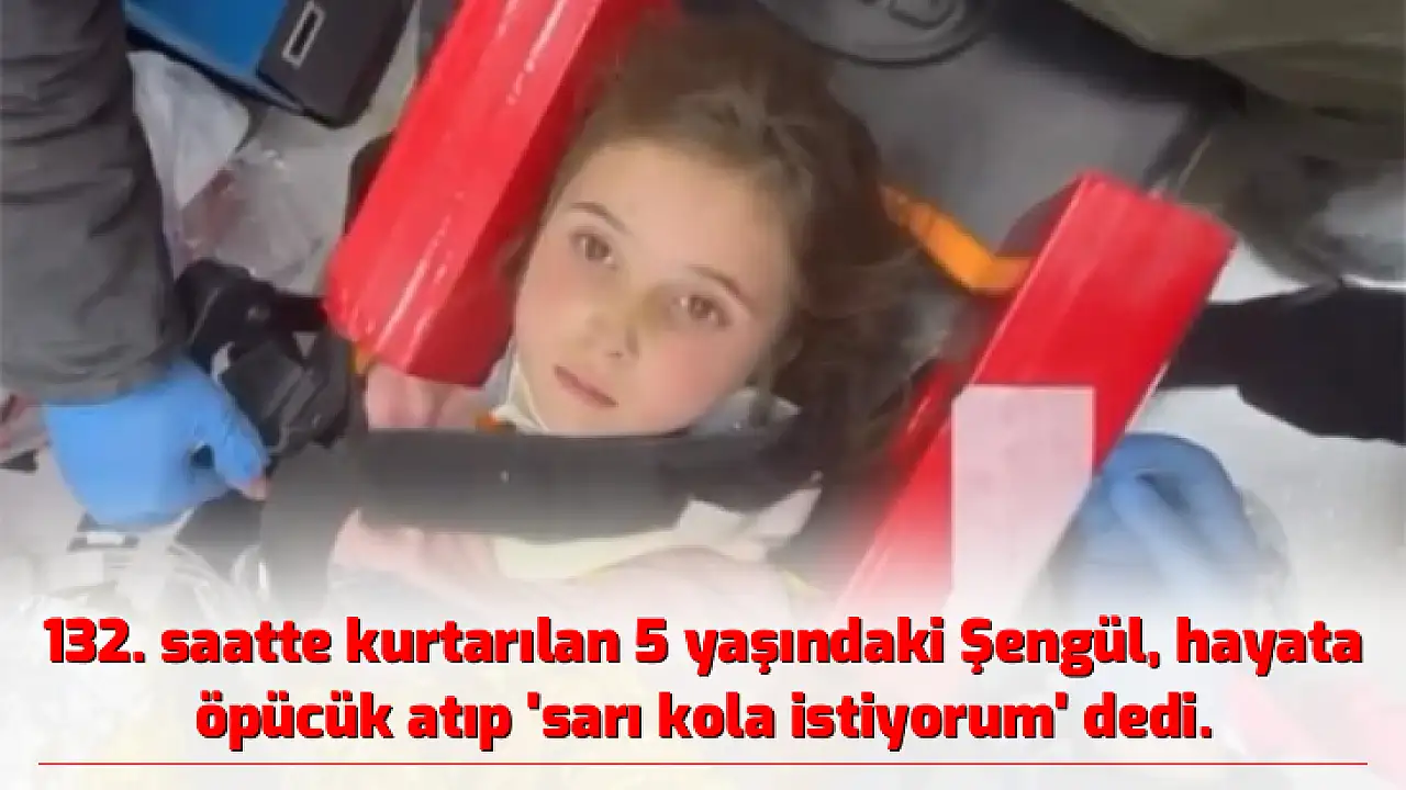 Kahramanmaraş merkezli iki depremin ardından aralıksız sürdürülen arama kurtarma çalışmalarından umutlandıran haberler geliyor. Bunlardan biri de depremin 132. saatinde kurtarılan 5 Şengül ve babası oldu. Enkazdan çıkarıldıktan sonra sedyeye alınan Şengül’e ne istediği soruldu. Kendisini kurtaran ekibe öpücük atan Şengül, "Bir sürü kola istiyorum. Sarı kola istiyorum. Uçakta içeceğim" dedi. Ardından Şengül hastaneye kaldırıldı.