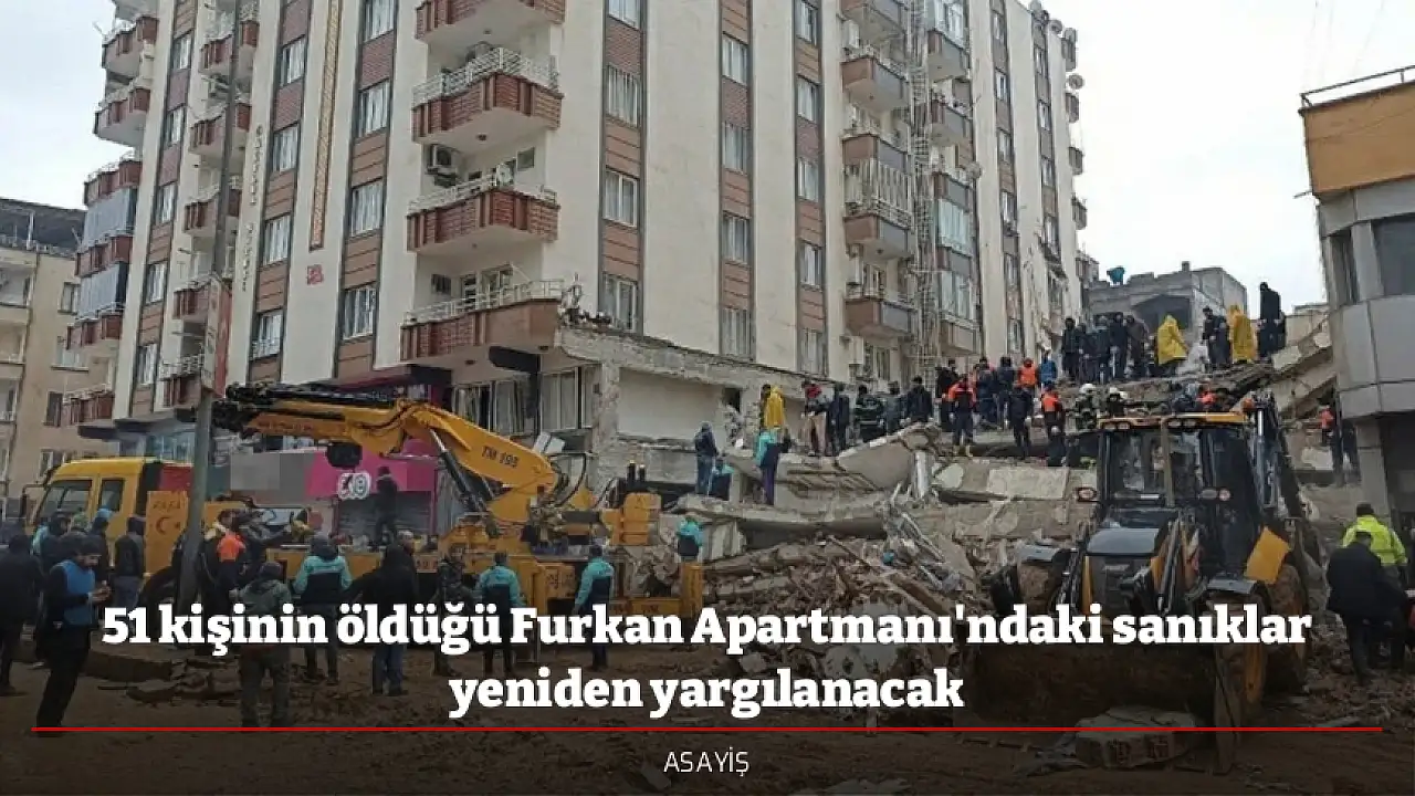 Gaziantep'in Nizip ilçesinde 6 Şubat depreminde yıkılan ve 51 kişinin hayatını kaybettiği Furkan Apartmanı davasında, sanıklar yeniden yargılanacak.
