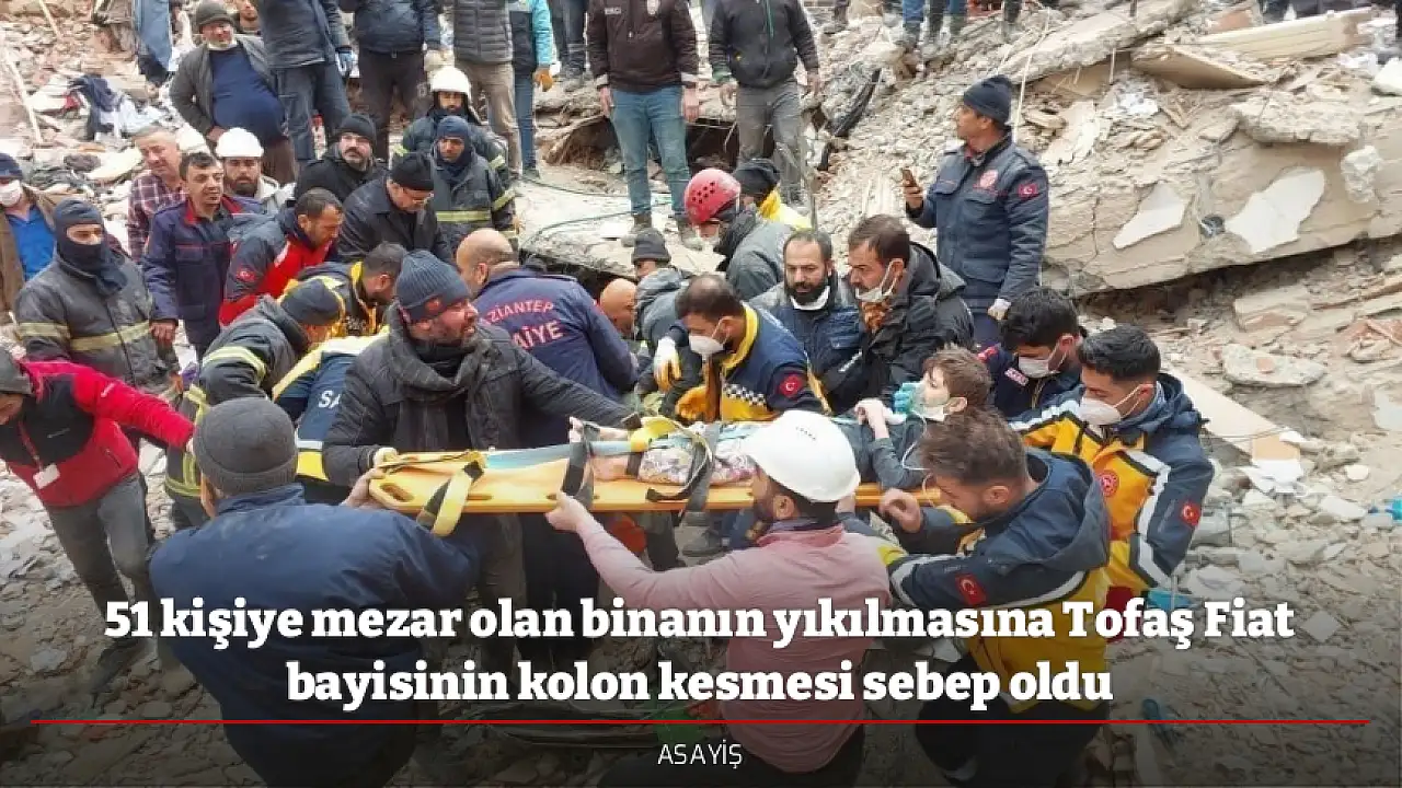 - 51 kişiye mezar olan binanın yıkılmasına Tofaş Fiat bayisinin kolon kesmesi sebep oldu