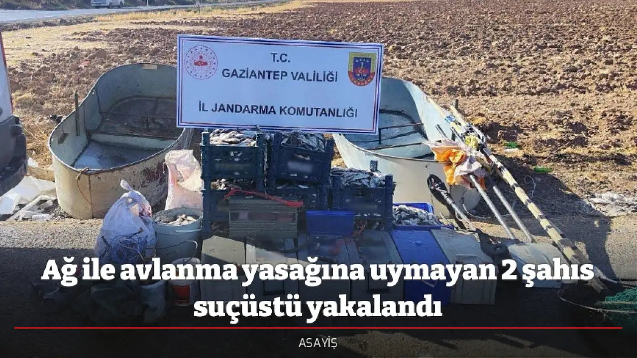 Gaziantep'te yasak olmasına rağmen ağ atarak balık avlayan 2 şahıs, jandarma ekiplerince suçüstü yakalandı.