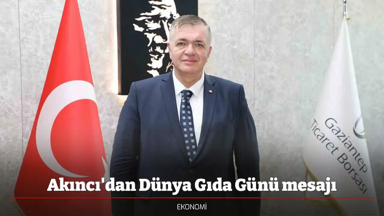 Gaziantep Ticaret Borsası (GTB) Yönetim Kurulu Başkanı Mehmet Akıncı, Birleşmiş Milletler Gıda ve Tarım Örgütü (FAO) tarafından gıda üretimi, tüketimi ve açlıkla mücadeleye dikkat çekmek amacıyla her yıl 16 Ekim'de kutlanan Dünya Gıda Günü dolayısıyla mesaj yayımladı.