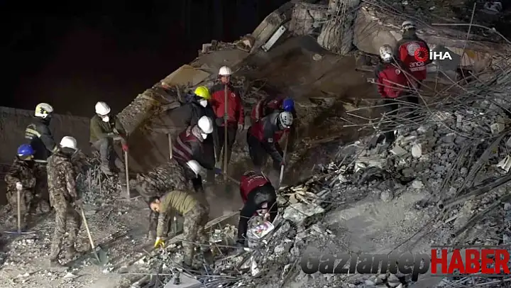 Kahramanmaraş Pazarcık merkezli 7.7'lik ilk depremde yıkıma uğrayan Gaziantep'teki 11 katlı Emre Apartmanı'nda arama kurtarma çalışmaları 90. saatine girdi. Ekipler, arama kurtarma çalışmalarının 90. saatinde belirledikleri bir noktada çalışmalarını yoğunlaştırdı.