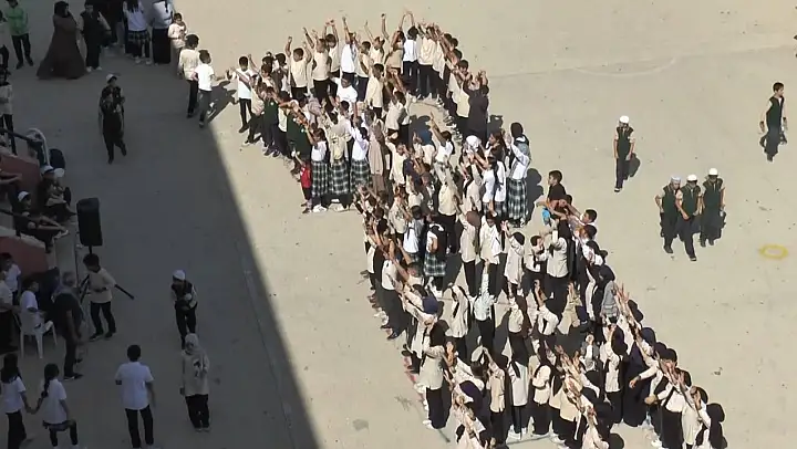Gaziantep'te ortaokul öğrencileri Gazze'de yaşanan insanlık dramına dikkat çekmek amacıyla Gazze koreografisi oluşturdu.