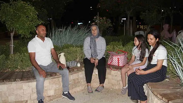 Sıcak havalar nedeniyle parkta dinlenmeye ve serinlemeye çalıştıklarını söyleyen vatandaşlar, bu yıl havaların çok sıcak geçtiğine dikkat çektiler. Sıcak ve bunaltıcı havalar nedeniyle evde duramadıklarını ve ailece soluğu parkta aldıklarını belirten vatandaşlardan Yusuf Kaptan, 'Bu yıl çok sıcak geçiyor. Kışın yağmur yağmadığı ve sular çekildiği için zaten bayağı bir sıcaklık var. Bu zamana kadar böyle bir sıcak görülmedi. 40-45 derecenin üzerinde sıcaklıklar oluyor. Millet evde klima çalıştırıyor ama klimalara da elektrik dayanmıyor. Sıcak hava nedeniyle herkes akşamı bekliyor. Serin olan alanları ve parkları tercih ediyorlar' dedi.