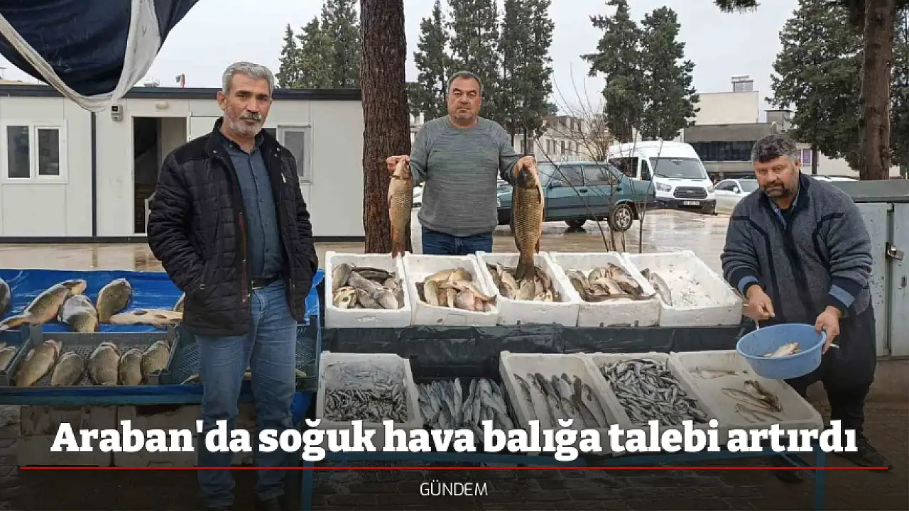Son günlerde kar, sağanak yağış ve yer yer don olaylarının etkili olduğu Araban ilçesinde soğuk hava hayatı olumsuz etkilemeye devam ederken, balık satışlarında da gözle görülür bir artış yaşanıyor. Fırat Nehri’nde balıkçılar tarafından teknelerle avlanan balıklar, ilçedeki tezgahlarda yoğun ilgi görüyor. Arabanlı balıkçı Mehmet Ali Çabuk, soğuk havaların balık tüketimini artırdığını belirtti. Çabuk, "İlçe genelinde son günlerde kar, sağanak yağış ve don olaylarıyla birlikte hava oldukça soğudu. Bu nedenle vatandaşlar özellikle Fırat Nehri’nden günübirlik tutulan taze balıklara büyük ilgi gösteriyor. Tezgahımda satışa sunduğum taze balıklar hem kış aylarının vazgeçilmezi hem de fiyat olarak ekonomik olduğu için yoğun talep görüyor" dedi.