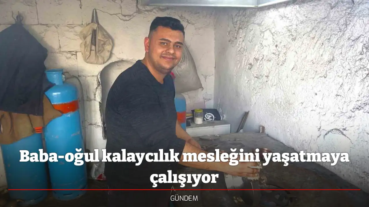Gaziantep'te kalaycılık mesleğinin son temsilcilerinden Ömer Çetinkaya, oğlu Halil İbrahim Çetinkaya ile birlikte mesleğini yaşatmaya çalışıyor.