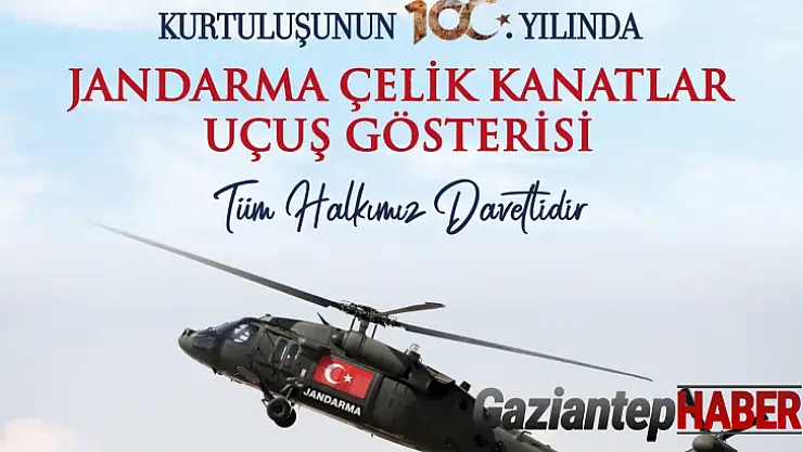Gaziantep’in düşman işgalinden kurtuluşunun 100. yıldönümü nedeniyle Jandarma Çelik Kanatlar helikopteri nefesleri kesen bir gösteri sergiledi. Yaklaşık 1 saat süren gösteri esnasında helikopter, Gaziantep Kalesi ve 25 Aralık Gaziantep Savunması Kahramanlık Panoraması ve Müzesi gibi kentin tarihi ve kültürel mekanlarının üzerinde tur attı. Zaman zaman alçak uçuş yapan helikopter, manevraları ile izleyenleri heyecanlandırdı.