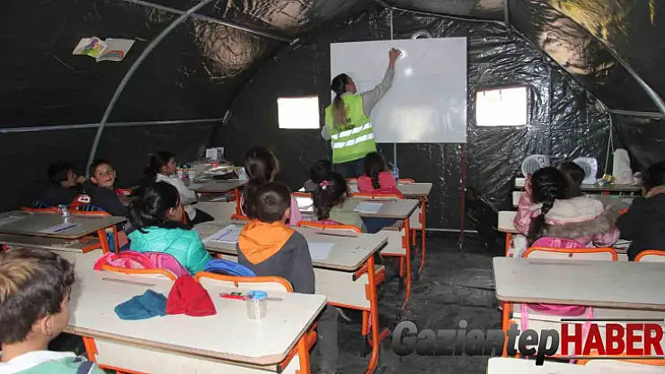 Kahramanmaraş depremleri nedeniyle ara verilen eğitime, Gaziantep'in İslahiye ilçesinde bugün çadırlarda başlandı. Depremin felaketine tanık olan öğrenciler, yeni öğretmenleri ile ders işleyip oyunlar oynadı.