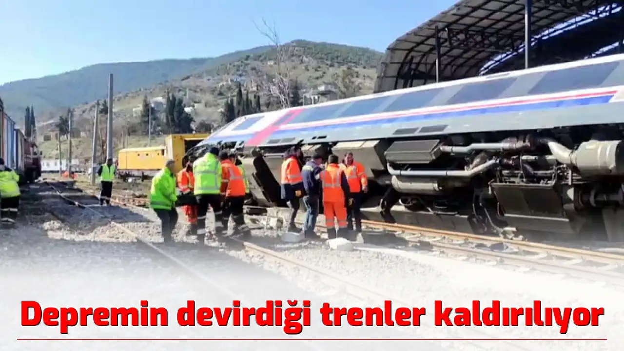 Gaziantep'in Islahiye ilçesinde depremin şiddetiyle devrilen 6 trenin 5'i kaldırıldı. Bir tanesini de kaldırma işlemi sürüyor.