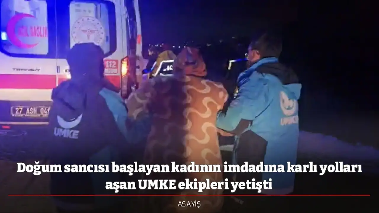 Gaziantep'te doğum sancısı başlayan ancak karla kaplı yollar nedeniyle köyden çıkarılamayan hamile kadının imdadına UMKE ekipleri yetişti. Seferber olan UMKE ve sağlık ekipleri, köye ulaştıktan sonra hamile kadını hastaneye yetiştirdi.