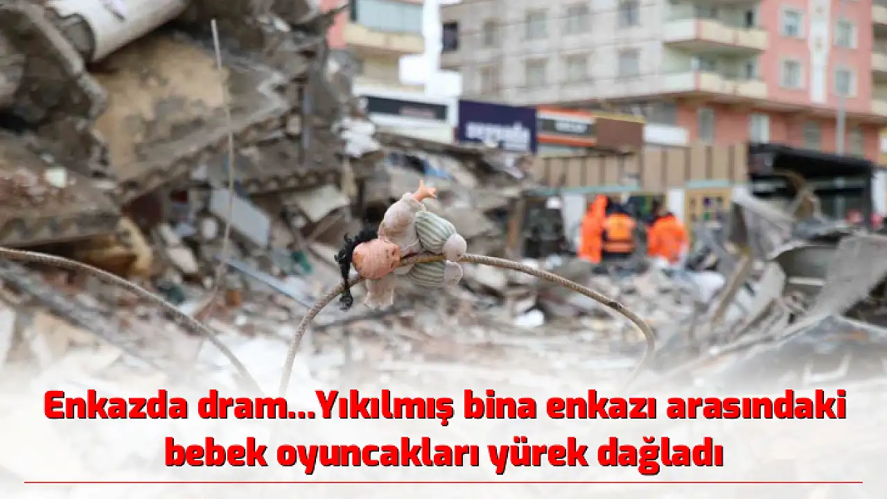 Enkazda dram...Yıkılmış bina enkazı arasındaki bebek oyuncakları yürek dağladı