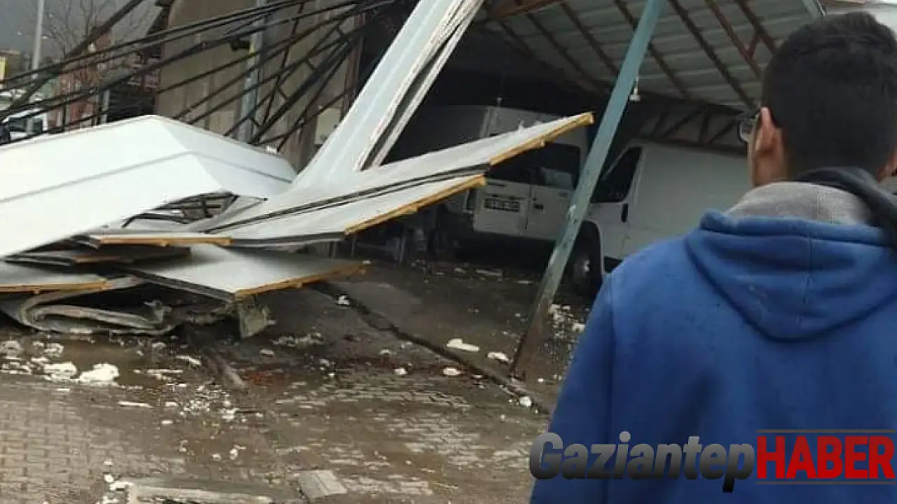 Gaziantep’in Nurdağı ilçesinde şiddetli fırtına iş yerlerinin çatısını uçurdu