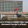 Gaziantep'te 6 Şubat depremlerinde Bahar Apartmanı'nın yıkılması sonucu 10 kişinin hayatını kaybetmesine ilişkin davada 1'i tutuklu 3 sanık 11 yıl hapis cezasına çarptırıldı. Mahkeme heyeti, tutuklu sanığın cezaevinde kaldığı süreyi dikkate alarak tahliyesine karar verdi.
