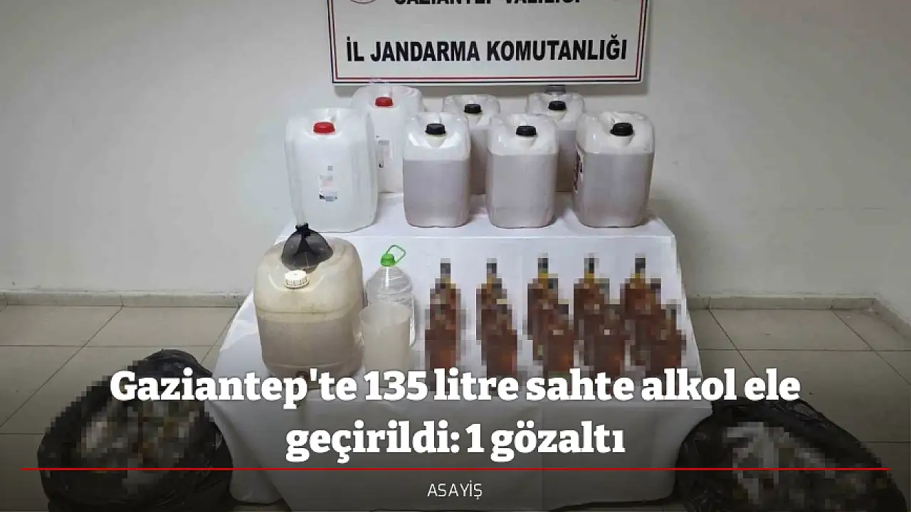 Gaziantep İl Jandarma Komutanlığı ve Cumhuriyet Başsavcılığı koordinesinde sahte alkolle mücadeleye yönelik çalışma yaptı. Çalışmalar sonucunda, Şahinbey ilçesinde F.B. isimli şahsın sahte alkol imal ve ticareti yaptığı tespit edildi. Takibe alınan şahıs, aracı ile sahte alkol sevkiyatı yaptığı esnada aracı durdurularak gözaltına alındı. Araçta yapılan aramalarda 135 litre sahte alkol, 65 litre etil alkol ve 100 adet boş viski şişesi ele geçirildi.