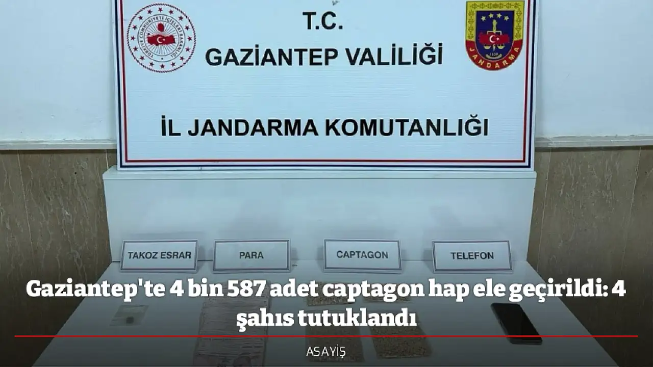 Gaziantep’te jandarma ekiplerince yapılan uyuşturucu operasyonlarında 4 bin 587 adet captagon hap ele geçirilirken yakalanan 4 şüpheli tutuklandı.