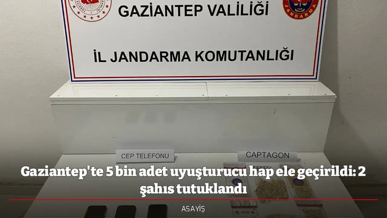 Gaziantep'te jandarma ekiplerinin çalışmaları sonucu 5 bin adet uyuşturucu hap ele geçirildi, yakalanan 2 şüpheli tutuklandı.