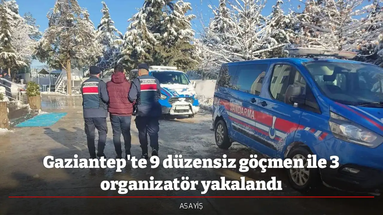 Gaziantep'te jandarma ekiplerinin yol kontrol faaliyetleri esnasında 9 düzensiz göçmen ile 3 organizatör yakalandı. Organizatör olduğu iddia edilen şahıslardan biri sevk edildiği adli makamlarca tutuklandı.