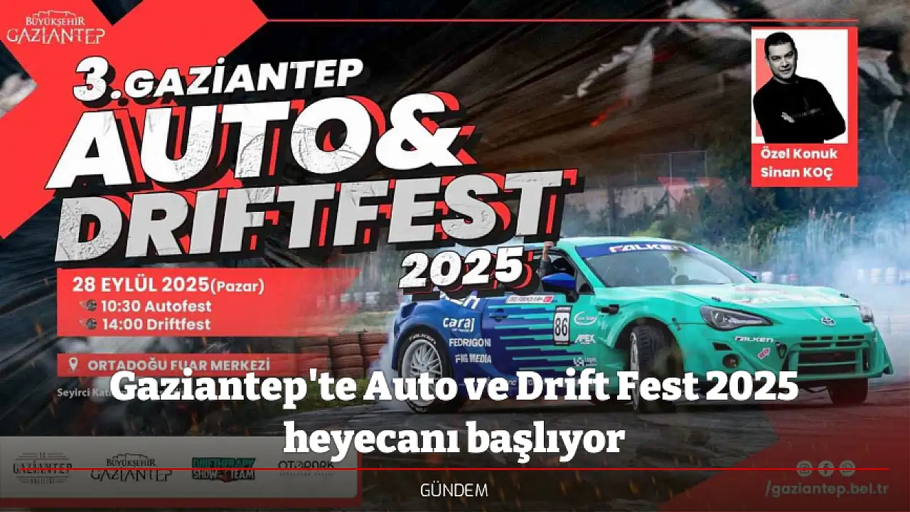 Gaziantep Büyükşehir Belediyesi öncülüğünde düzenlenen Gaziantep Auto ve Drift Fest 2025, 28 Eylül Pazar günü 10.30’da Orta Doğu Fuar Merkezi’nde otomobil tutkunlarını bir araya getirecek. Bu yıl üçüncüsü yapılacak olan organizasyon, kentin en çok beklenen etkinliklerinden biri olma özelliğini taşıyor.
