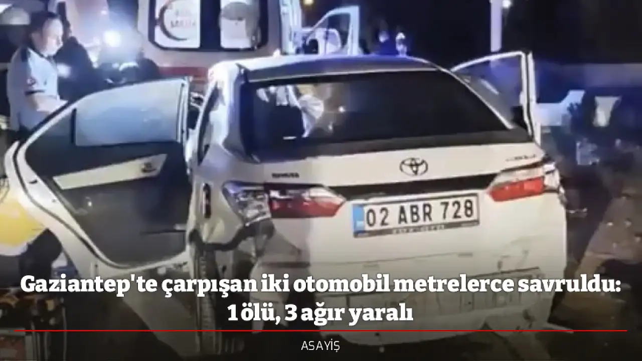 Gaziantep'te çarpışan iki otomobil metrelerce savruldu: 1 ölü, 3 ağır yaralı