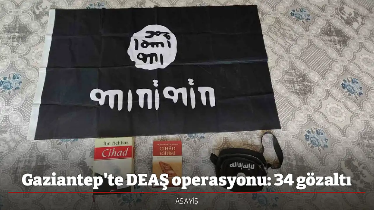 Gaziantep İl Emniyet Müdürlüğüne bağlı Terörle Mücadele Şube Müdürlüğü ekipleri, DEAŞ terör örgütüne yönelik Cumhuriyet Başsavcılığı koordinesinde 25- 30 Aralık tarihlerinde operasyon düzenledi. Operasyon kapsamında çok sayıda adrese eş zamanlı baskın yapılırken terör örgütüne üye olmak ve örgüt propagandası yapmak suçu kapsamında 34 şüpheli gözaltına alındı.