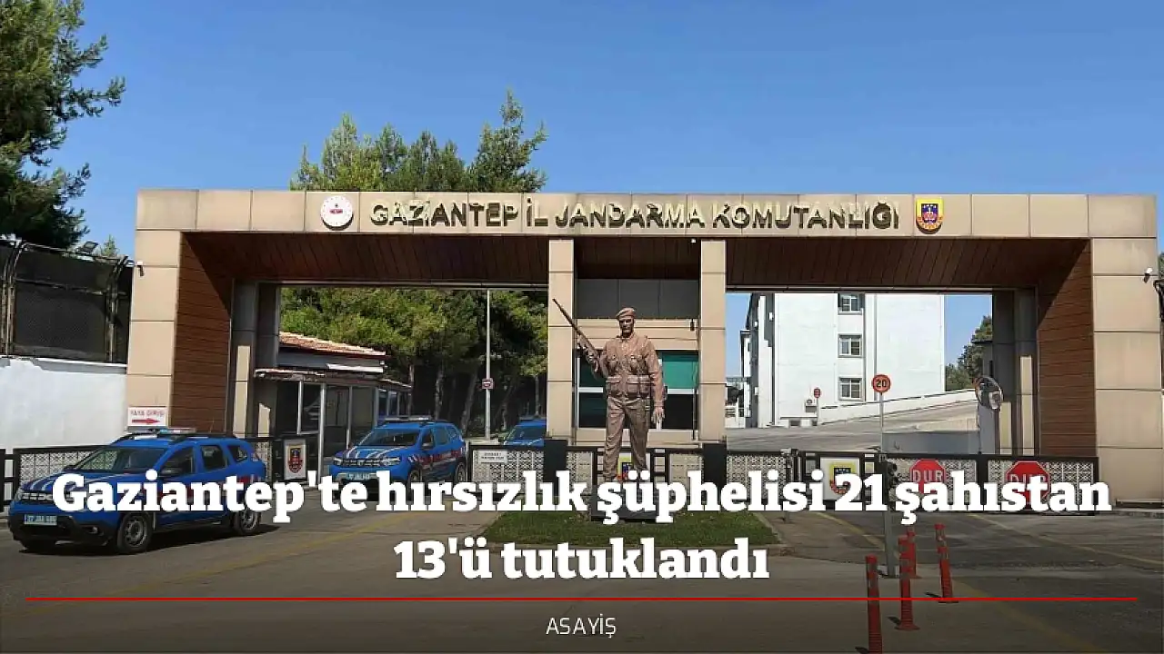 Gaziantep'te jandarma ekiplerinin son bir ayda yaptığı operasyonlarda yakalanan hırsızlık şüphelisi 21 şüpheliden 13'ü tutuklandı.