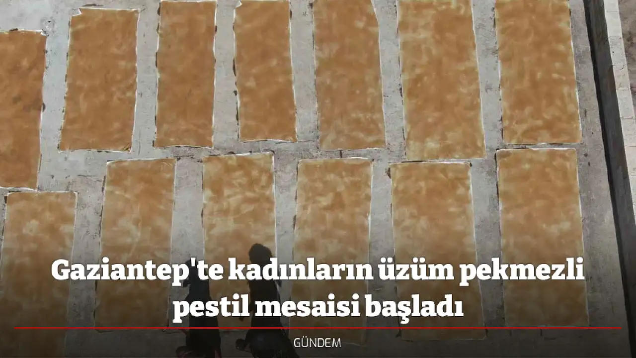 Gaziantep'te yöresel lezzetler arasında yer alan ve ağırlıklı olarak kış aylarında tüketilen kente özgü doğal üzüm pekmezli pestil, kadınlar tarafından geleneksel yöntemlerle imece usulü hazırlanarak damakları tatlandırıyor.