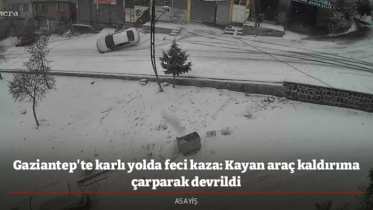Gaziantep'te kar yağışı nedeniyle kayganlaşan yolda sürücüsünün direksiyon hakimiyetini kaybettiği araç, kaldırıma çarptıktan sonra devrildi. Kaza anı kameraya yansıdı.