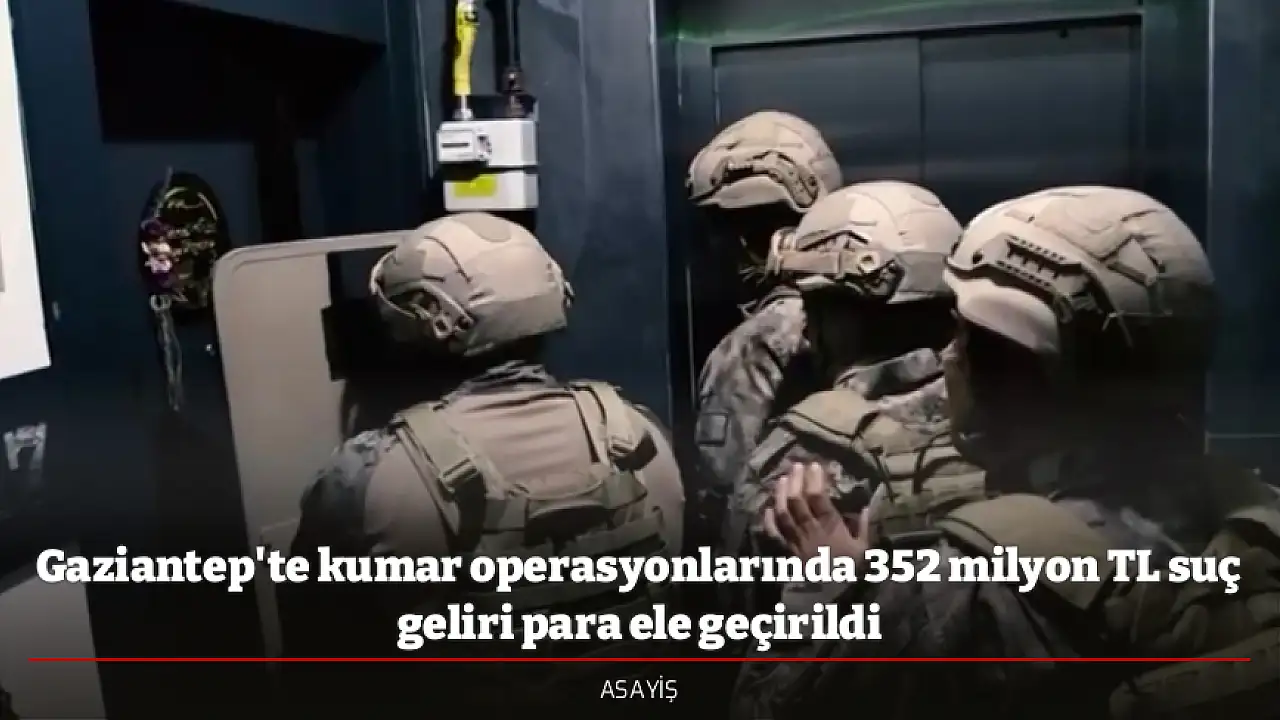 Gaziantep'te 2025 yılında yapılan kumar operasyonlarında 352 milyon 420 bin TL suç geliri para ile 146 adet bilgisayar ve oyun makinesi ele geçirildi, 241 şüpheli şahsa işlem yapıldı.