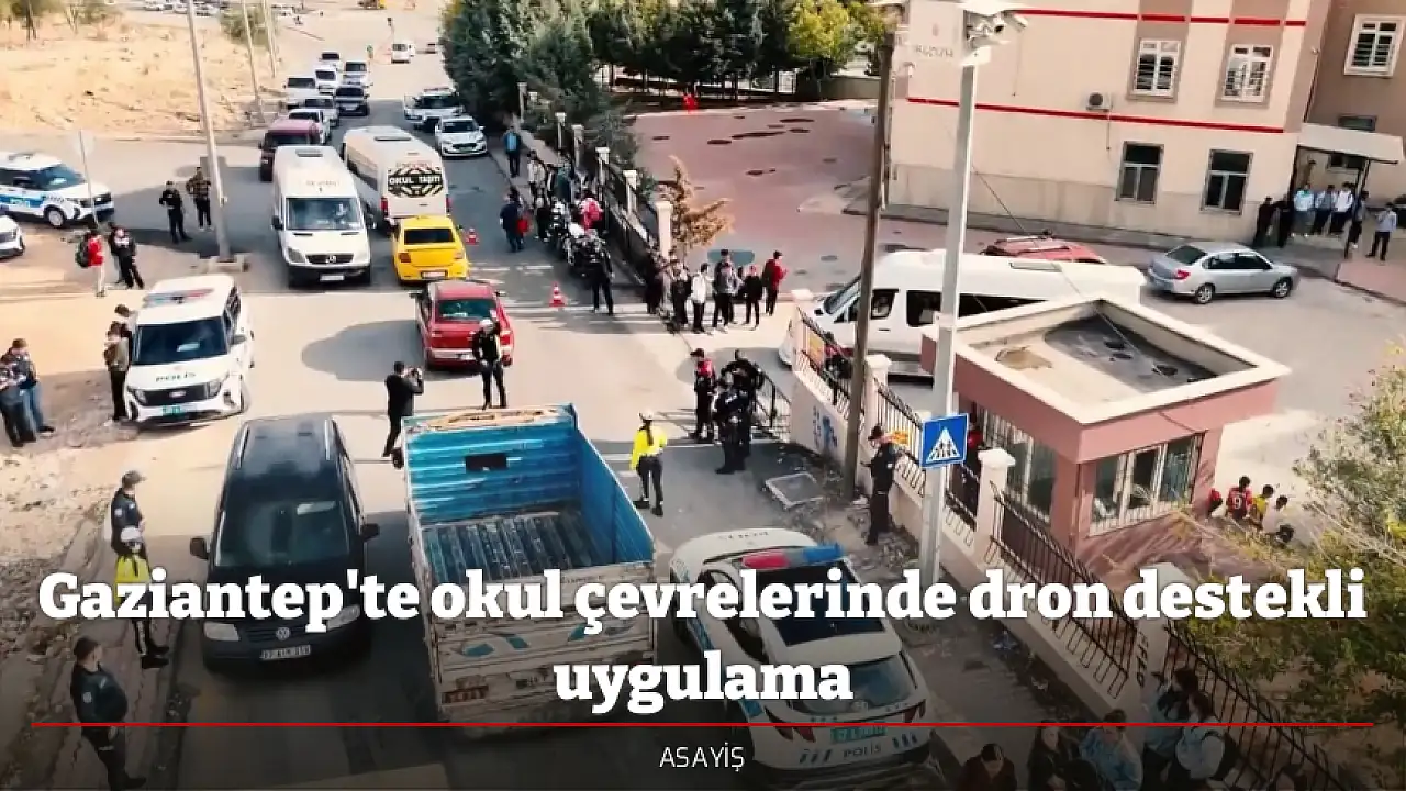 Gaziantep'te polis ekiplerince okul çevrelerinde dron destekli huzur ve güven uygulaması yapıldı.