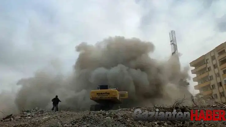 Gaziantep'in Nizip ilçesinde, Kahramanmaraş merkezli 7,7 ve 7,6 büyüklüklerindeki depremlerde ağır hasar gören binalarda yıkım devam ediyor.