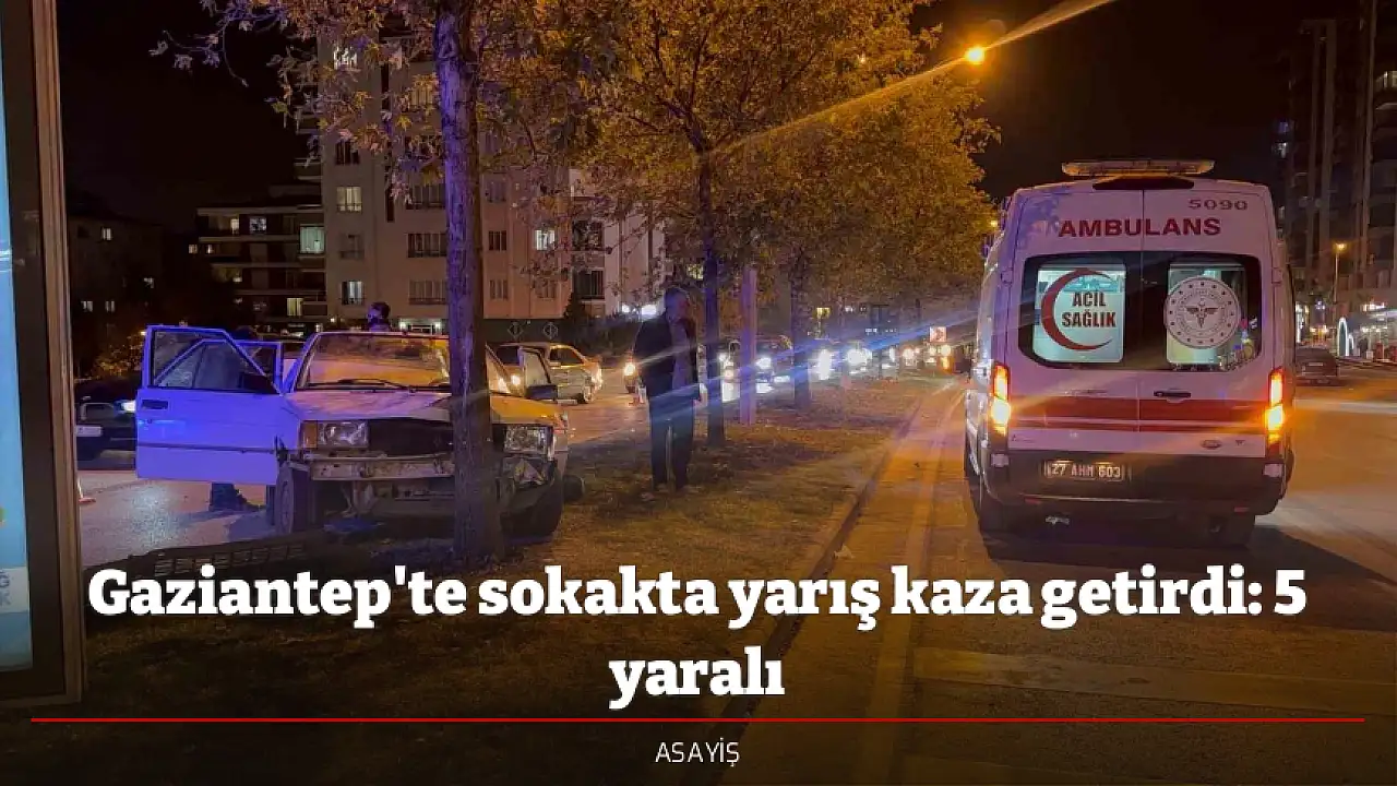 Kaza, Şehitkamil ilçesi Naci Topçuoğlu Caddesi’nde meydana geldi. İddiaya göre, A.P. yönetimindeki 06 E 7803 plakalı BMW marka otomobil, plakası ve sürücüsü belirlenemeyen iki araçla yarıştığı sırada cadde üzerinde ilerleyen 27 VH 699 plakalı araca çarptı. Çarpmanın şiddetiyle kontrolden çıkarak savrulan 27 VH 699 plakalı otomobil, bir ağaca çarparak durabildi. 06 E 7803 plakalı BMW marka araç ise yol kenarındaki araziye uçarak durdu. Kazada araçta maddi hasar oluşurken, iki araçtaki toplam 5 kişi yaralandı. Kazayı görenlerin ihbarı üzerine olay yerine polis ve sağlık ekipleri sevk edildi. Olay yerine gelen sağlık ekipleri, yaptıkları ilk müdahalenin ardından yaralıları hastaneye kaldırdı. Yaralıların sağlık durumlarının iyi olduğu öğrenilirken, kazayla ilgili inceleme başlatıldı.