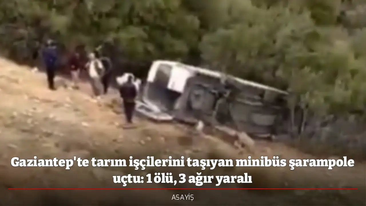 Gaziantep'in Nurdağı ilçesinde tarım işçilerini taşıyan minibüsün şarampole uçması sonucu meydana gelen kazada 1 kişi öldü, 3 kişi ağır yaralandı.