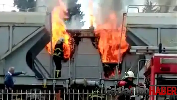 Gaziantep’te meydana gelen yangında peronda bekleyen TCDD personellerine ait vagonlar yanarak kullanılmaz hale geldi.
