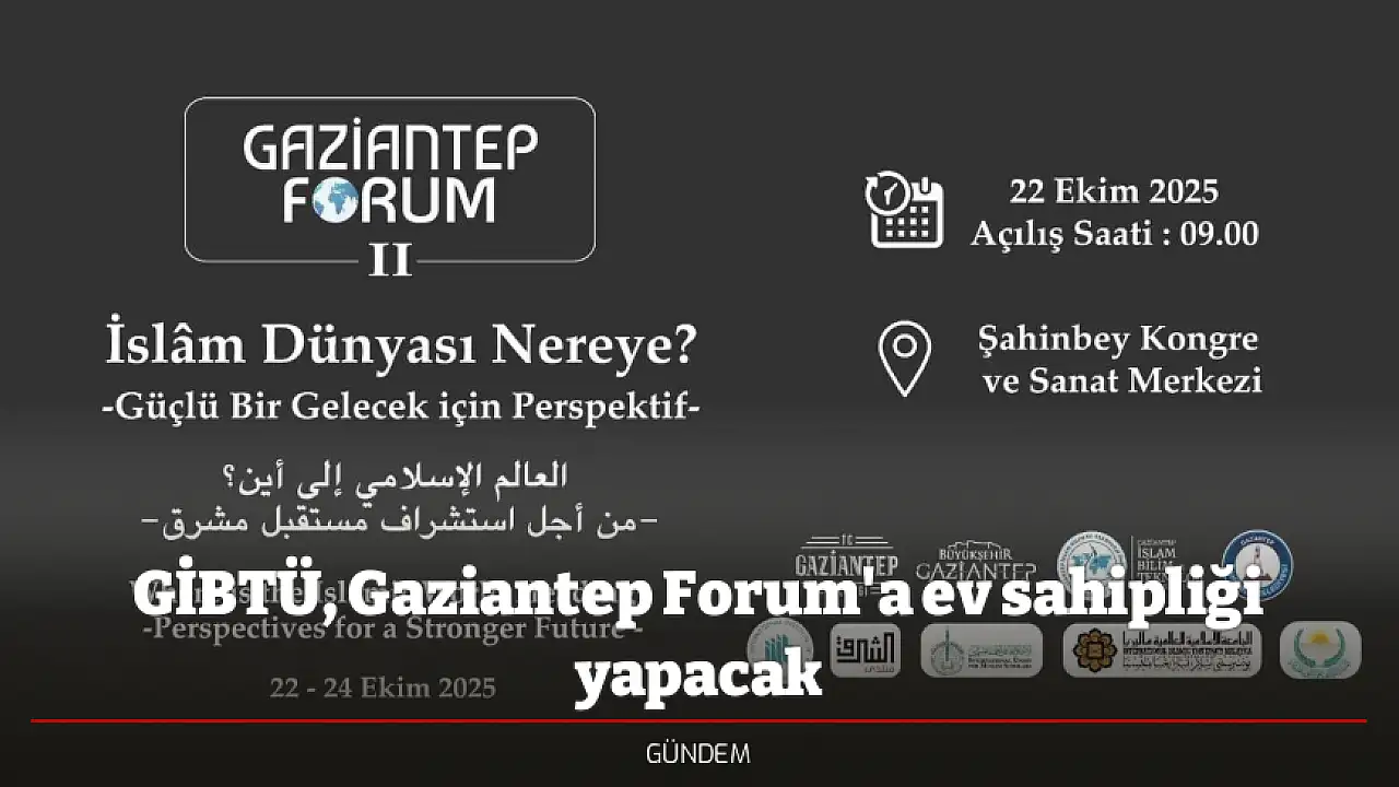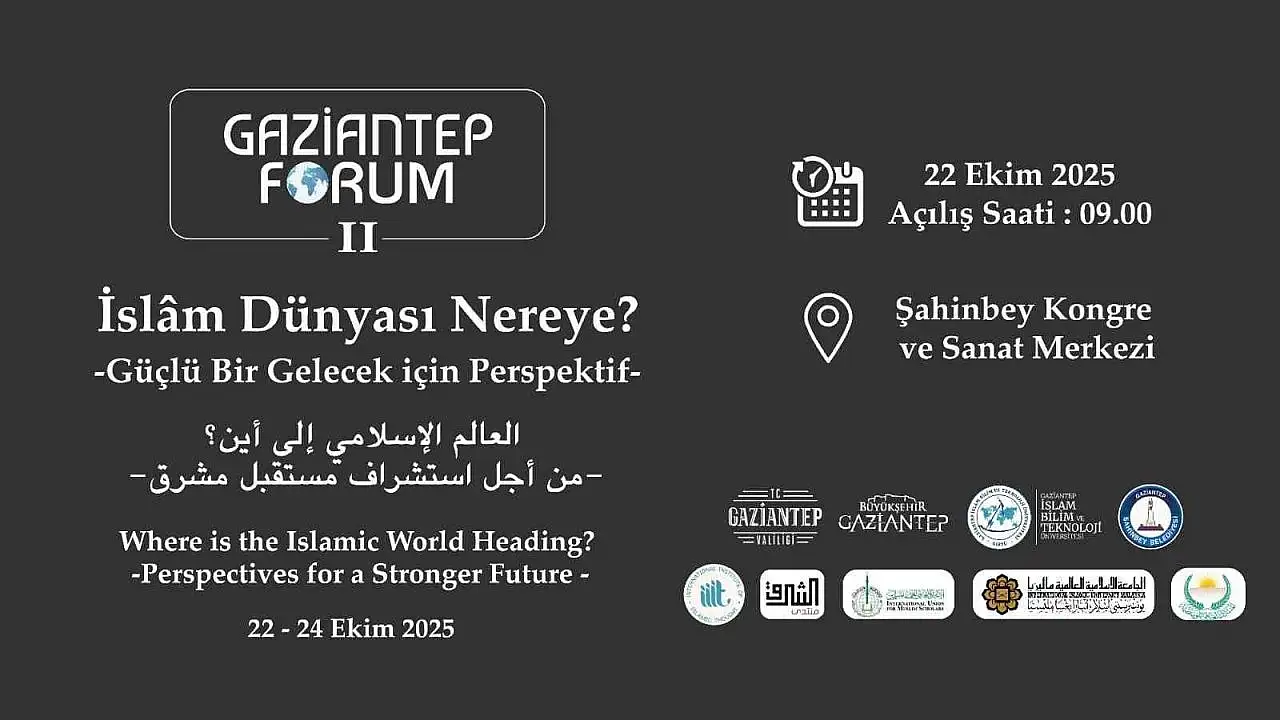 Gaziantep İslam Bilim ve Teknoloji Üniversitesi tarafından düzenlenen Gaziantep Forum II, bu yıl "İslâm Dünyası Nereye? - Güçlü Bir Gelecek için Perspektif" temasıyla gerçekleştirilecek. İslâm dünyasının mevcut meseleleri, gelecek vizyonu ve küresel ölçekteki rolünün ele alınacağı Gaziantep Forum’a dünyanın dört bir yanından akademisyenler, araştırmacılar, sivil toplum kuruluşları ve ilgili paydaşlar katılım sağlayacak. Forum 22-24 Ekim 2025’te Şahinbey Kongre ve Sanat Merkezi’nde yapılacak.