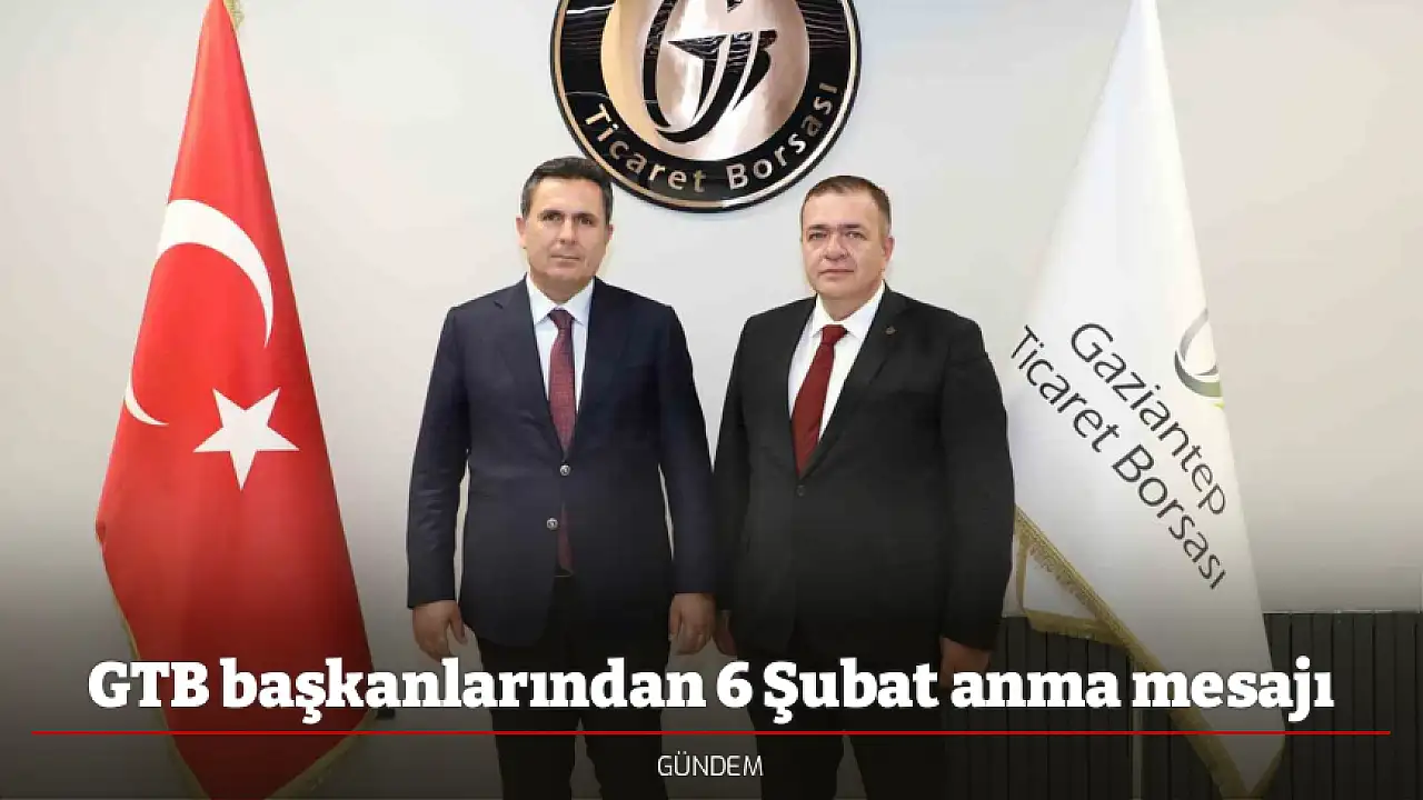 Gaziantep Ticaret Borsası (GTB) Meclis Başkanı Ahmet Tiryakioğlu ve Yönetim Kurulu Başkanı Mehmet Akıncı, 6 Şubat depremlerinin yıl dönümü dolayısıyla ortak bir anma mesajı yayımladı.