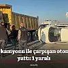 Hafriyat kamyonu ile çarpışan otomobil yan yattı: 1 yaralı