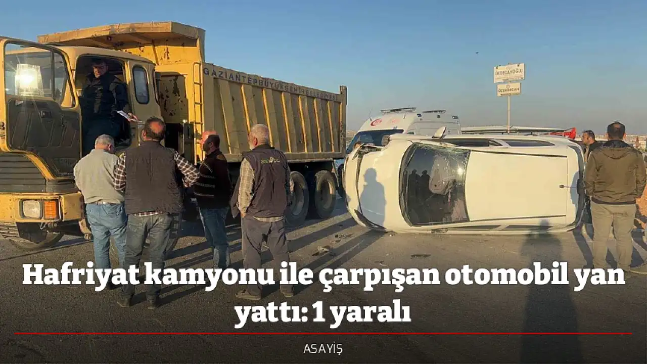 Gaziantep'in Nizip ilçesinde hafriyat kamyonu ile çarpışan otomobilin yan yatması sonucu 1 kişi yaralandı.