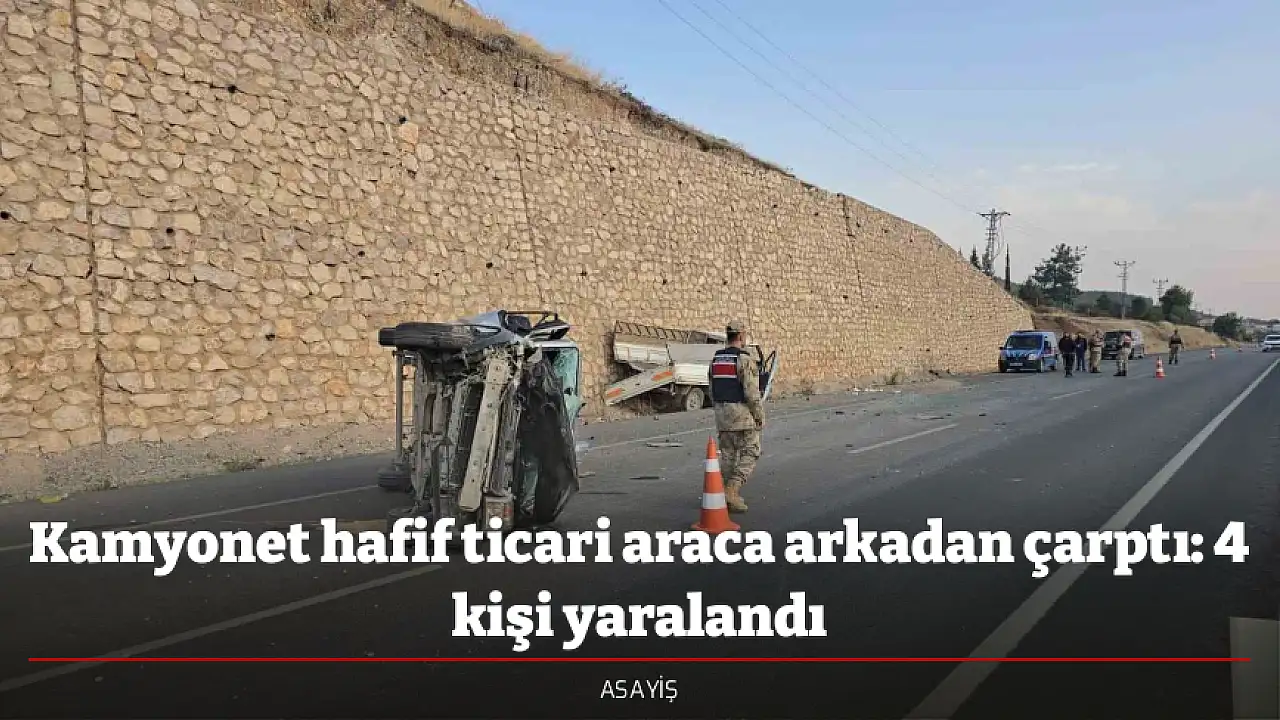 Kaza, sabah saatlerinde İslahiye-Hassa kara yolunun 7’nci kilometresinde meydana geldi. 24 yaşındaki E.C.Z.’nin kullandığı 02 FY 919 plakalı kamyonet, aynı yönde ilerleyen 37 yaşındaki M.Ç.’nin kullandığı 42 Y 0908 plakalı hafif ticari araca arkadan çarptı. Çarpışmanın etkisiyle hafif ticari araç devrildi. Hurdaya dönen araçlarda sürücüler ile birlikte M.A.A. (27) ve A.D. (18) yaralandı. İhbarla bölgeye jandarma, itfaiye ve sağlık ekipleri sevk edildi. Yaralılar, ambulanslarla İslahiye Devlet Hastanesi’ne kaldırıldı.