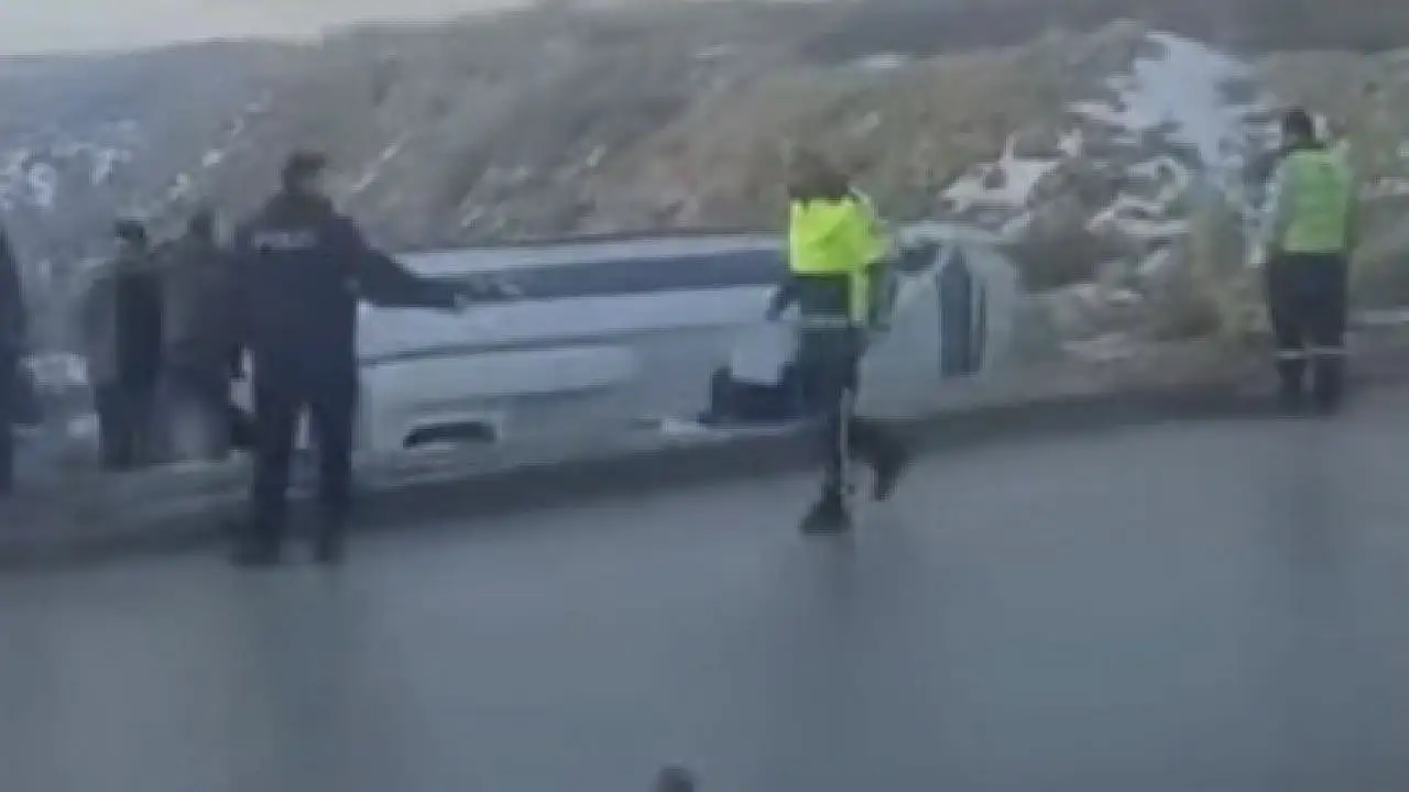 Gaziantep'te gizli buzlanma nedeniyle kayganlaşan yolda kontrolden çıkan işçi servisinin şarampole devrilmesi sonucu 10 işçi yaralandı.