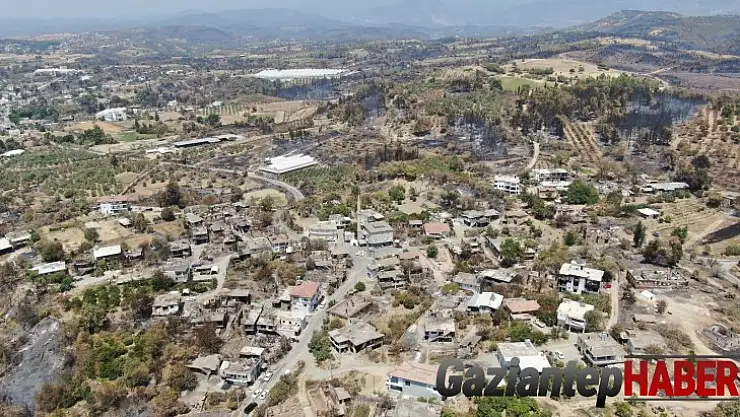 Antalya'nın Manavgat ilçesinde dokuz gündür devam eden yangında zarar gören ormanlık alanlar ve evler havadan drone ile görüntülendi.