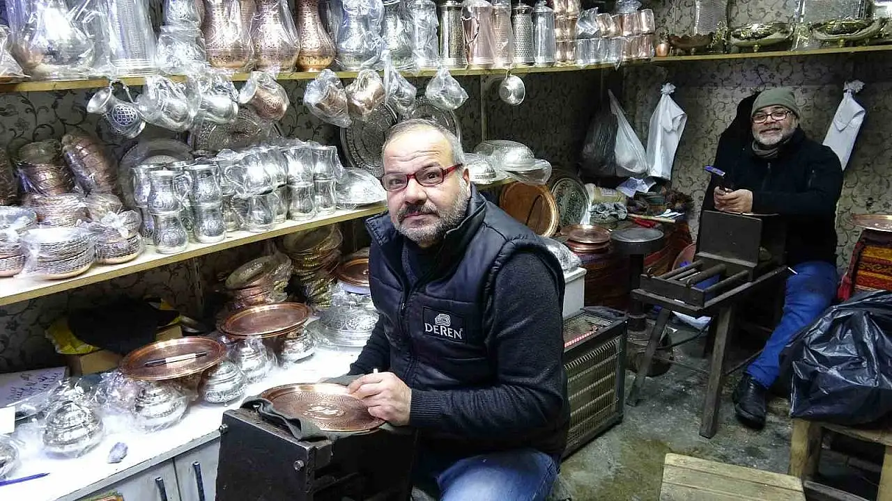 İlkokulu bitirdikten sonra 1982 yılında tarihi Bakırcılar Çarşısı’nda bakır işleme ustasının yanında çırak olarak mesleğe birlikte başlayan 52 yaşındaki Mesut Keklik ile 49 yaşındaki yeğeni Mehmet Sakça, 44 yıldır birlikte mesai yapıyor. Yıllarca çıraklık, işçilik ve kalfalık yaparak bakır işlemeciliğinin inceliklerini öğrenen ve ardından usta olan dayı yeğen, askere gidip geldikten sonra kendi atölyelerini kurdu.