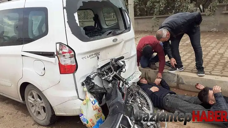 Gaziantep'te motosiklet, park halindeki hafif ticari araca arkadan çarptı. Çarpma sonucu meydana gelen trafik kazasında motosiklette bulunan 2 kişi yaralandı.