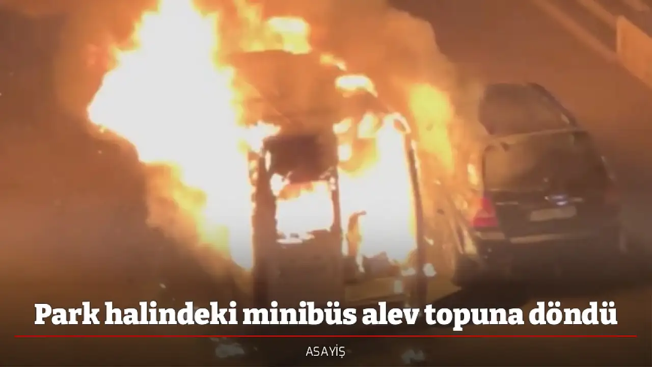 Gaziantep'in Nizip ilçesinde park halindeki minibüs alev topuna döndü. Yangında minibüsün yanında park halinde bulunan ve yeni alındığı öğrenilen otomobil de zarar gördü.
