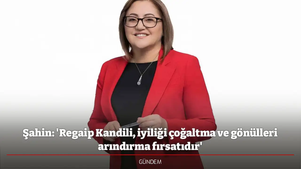 Gaziantep Büyükşehir Belediye Başkanı Fatma Şahin, Regaip Kandili dolayısıyla yayımladığı mesajında, bu mübarek gecenin gönülleri diri tutan, duaları çoğaltan ve manevi yenilenmeye kapı aralayan müstesna bir zaman olduğunu ifade etti.