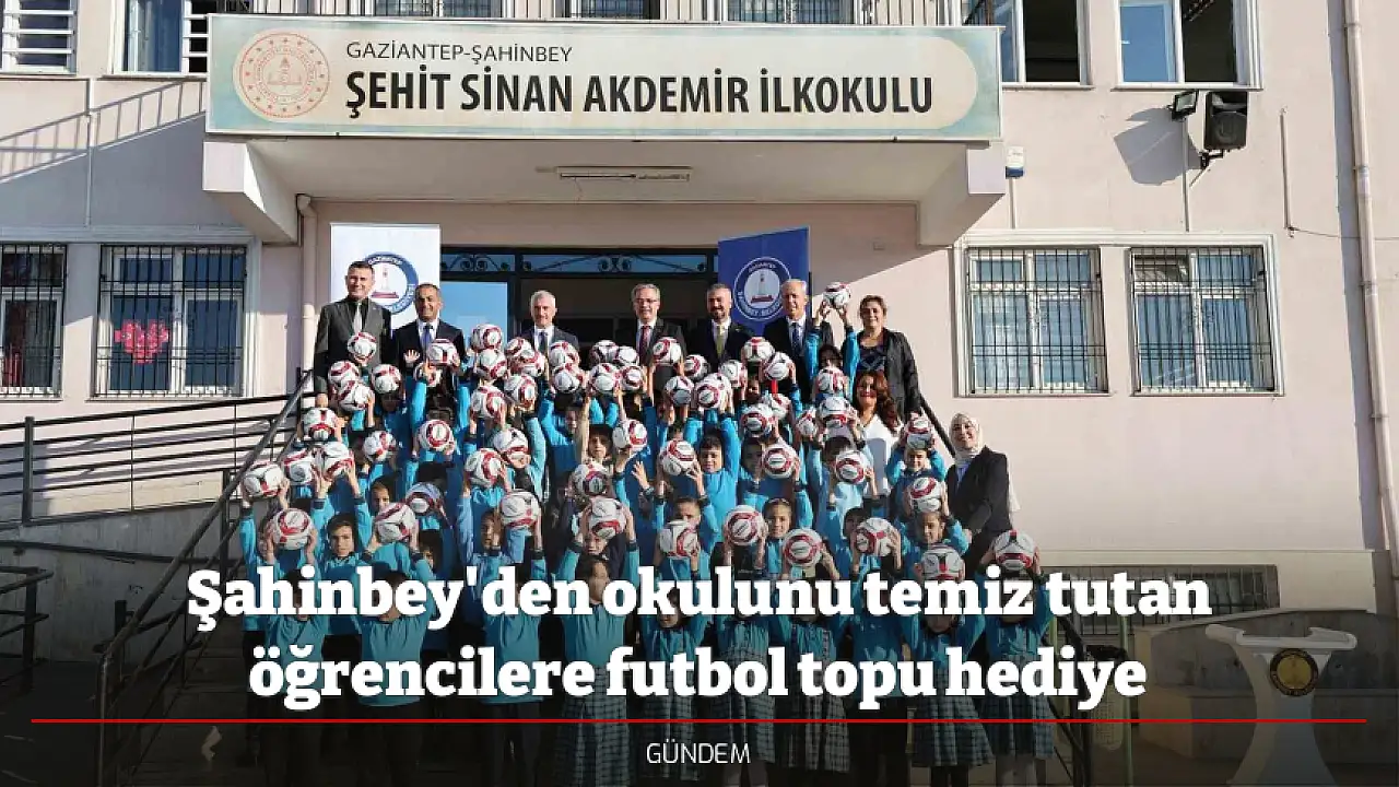 Şahinbey Belediye Başkanı Mehmet Tahmazoğlu, okulunu ve çevresini temiz tutan ilkokul öğrencilerini teşvik etmek için futbol topu ile ödüllendirdi.