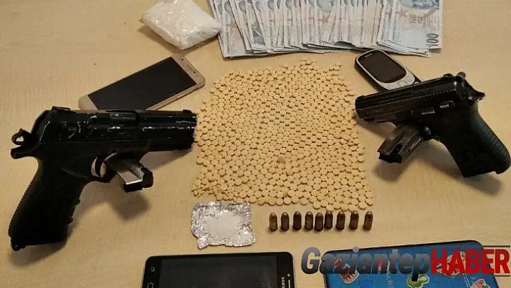 Gaziantep Emniyet Müdürlüğüne bağlı Şahinbey Emniyet Müdürlüğü ekipleri, Onur Mahallesi’nde park halinde olan bir araçta bulunan A.E.M. H.S.M. ve Ş.G. isimli 3 şahsın üzerinde arama yaptı. Yapılan aramalarda 644 adet captagon hap, bir miktar metamfetamin uyuşturucu maddesi, 1 adet tabanca, 9 adet fişek ve bir miktar sahte para ele geçirildi. Olayla ilgili 3 şahıs gözaltına alındı.