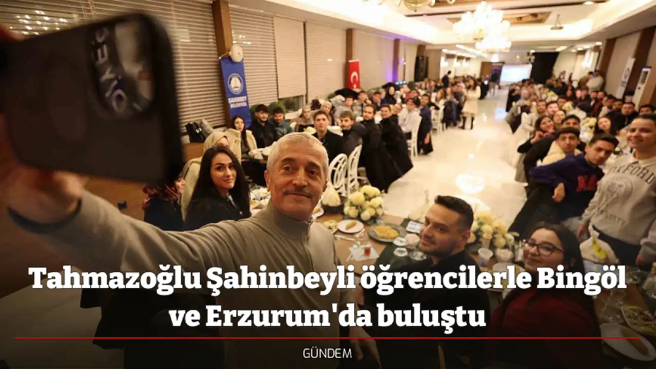 Şahinbey Belediye Başkanı Mehmet Tahmazoğlu, eğitim hayatlarını Gaziantep dışında sürdüren Şahinbeyli üniversite öğrencileriyle bir araya gelmeye devam ediyor. Daha önce farklı illerde Gaziantepli öğrencilerle buluşan Şahinbey Belediye Başkanı Mehmet Tahmazoğlu, bu kapsamda Bingöl ve Erzurum'da eğitim gören Şahinbeyli gençlerle bir araya geldi.