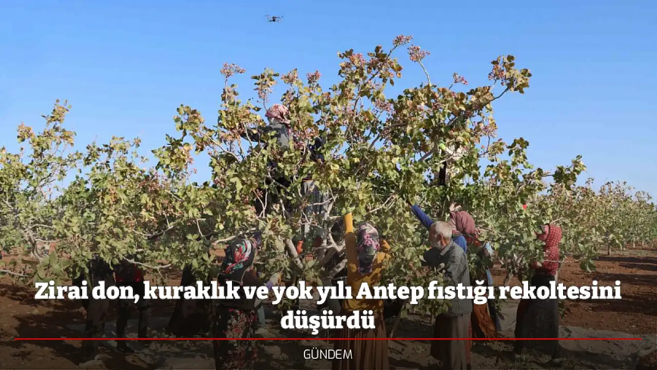 Bu sene ‘yok yılı’nın yanı sıra son yıllarda yaşanan kuraklığın etkilediği Antep fıstığını zirai don ve aşırı sıcaklık da vurdu. Fıstık yetiştiricilerinin bin bir emek ve zahmetle yetiştirdikleri, kentin önemli geçim kaynaklarından olan ve "yeşil altın" olarak da adlandırılan Antep fıstığında yapılan son hasatla sezon tamamlandı.
